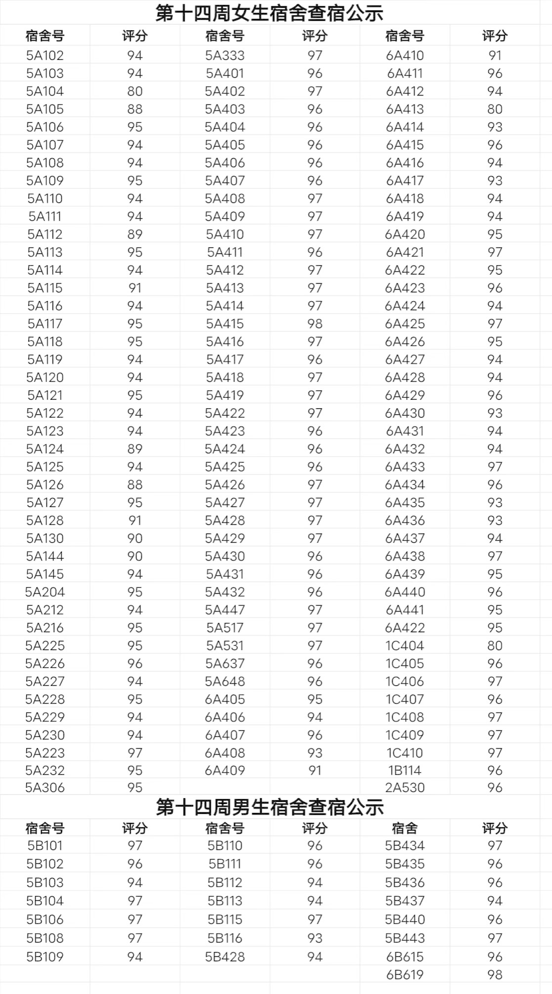 在本次的查寝工作中,大部分宿舍整体情况良好,宿舍干净整洁,安全意识较高,未发现使用违规电器的情况,但仍有部分宿舍存在个人物品摆放杂乱,在楼道堆放垃圾的情况,希望同学们无则加勉,有则改之,携手共建一个更加安全、卫生的宿舍环境。现将检查结果公布如下: