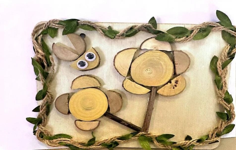 这副木拼画是使用废弃木材精心创作而成的。它承载着我们对地球的深情告白。废弃木材本是被丢弃的“废物”,但我们将其重新利用,赋予了它们新的生命。画中,瓢虫栖息于娇艳的花朵之上,灵动而富有生机,仿佛在诉说着大自然的和谐与美好。这幅画不仅展现了艺术的魅力,更传递出保护地球、珍惜资源的理念。我们每个人都是地球的守护者,从身边小事做起,如合理利用废弃木材,就能为地球增添一抹绿色。让我们携手共进,用行动守护我们的唯一家园,让地球永远充满生机与希望。
