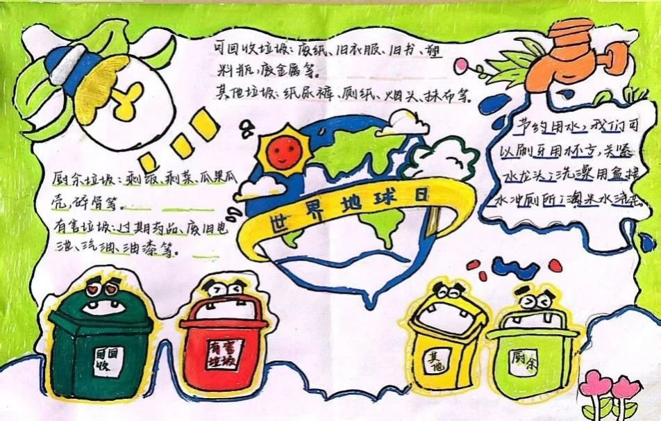 这幅简笔画用质朴的笔触串联起了保护地球的多个维度——从“开关”象征的节约用电,到“植树造林”的美好愿景,再到“可回收”倡导的垃圾分类,最后到绿色环保的低碳出行。画面中,分类标签与能源提示交织在一起,构成了微型的环保宣言。是这些生活中关于环保的小行动托起了我们共同栖居的星球。保护地球,从来不是宏大的口号,而是无数个日常瞬间所汇的生存智慧。