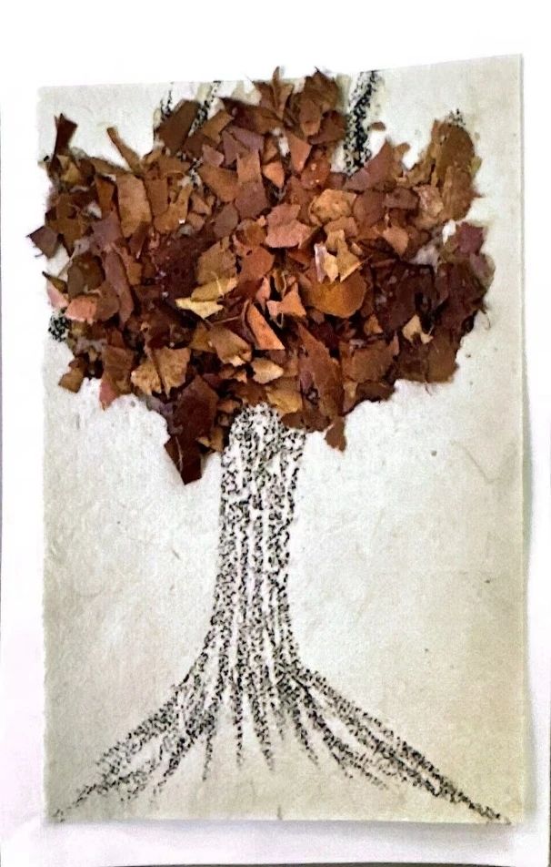 这幅作品通过简洁而富有象征意义的构图,展现了自然界中生命循环的美妙过程。使用了自然材料落叶,呈现出秋天的色彩和季节更替的自然景象。落叶的堆积不仅代表了生命的结束,也象征着新生的开始。每一片落叶都是树木生命周期的一部分,它们的分解和回归土壤为新生命的成长提供了养分。这幅作品旨在唤起人们对自然的敬畏与爱护,鼓励人们在日常生活中更多地关注和保护我们赖以生存的环境。通过艺术的形式,作品希望激发观者对自然界生命循环的思考,从而促进对环境保护的行动和对自然资源的珍惜。