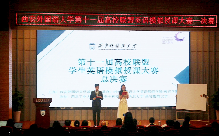 承办,西北工业大学、西安电子科技大学、西北大学、西安邮电大学等联盟高校协办的西安外国语大学第十一届高校联盟学生英语模拟授课大赛总决赛在西安外国语大学长安校区JA111成功举办。