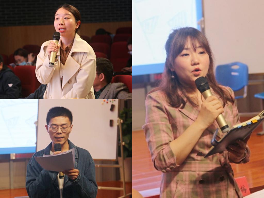 各组选手授课结束后,评委老师结合选手们各方面表现给出了中肯的建议与点评。李璐老师对第一组选手扎实的语言功底和充分的赛前准备给予肯定,同时希望选手们作为授课者在授课前应明确本节课的教学任务,设置具体的教学目标,合理安排课堂时间。章璐老师结合第二组选手表现指出,授课者应更加注重教学目标与课堂任务的设置,合理安排教学内容,并根据实际情况进行教案设计,以此达到教学最佳效果。杜超老师在比赛最后也对各位选手的精彩授课与扎实的语言功底表示了肯定,并围绕教学目标,教学展示,课堂互动等方面进行了细致点评。片言之赐皆事师也。评委老师具有针对性的点评给选手和现场同学们带来了更深层次的思考,带领大家对教学的意义有了更深刻的理解。