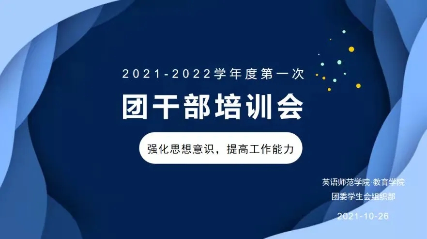 为强化团干部思想责任意识,提高团干部业务工作能力,英语师范学院·九州娱乐官网 分团委学生会组织部于10月26日晚19:00在教学楼F区举行了2021-2022学年度第一次团干部培训会。本次培训会的主题是“强化思想意识,提高工作能力”