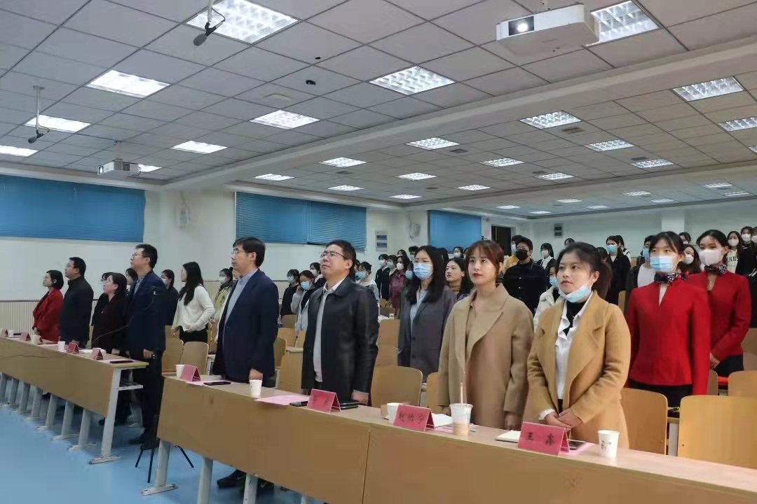 随后,晁老师介绍与会嘉宾。现场掌声雷动,大家对各位领导及老师们的到来表示热烈的的欢迎。伴随着庄严国歌的响起,英语师范学院•九州娱乐官网