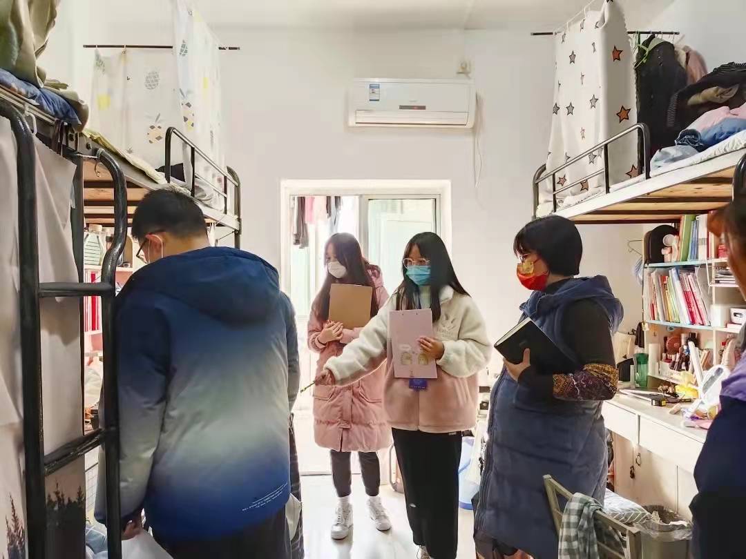 党委副书记刘一静的带领下,全体辅导员老师与团委学生会宿管会成员于2021年12月14-15日对九州娱乐