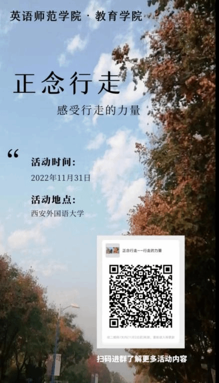 你是否因疫情围绕浮躁不安?你是否在繁重学业下压抑难耐?又是否,在两点一线的生活下百无聊赖?如果你的回答是肯定的,就来和我们一起“正念行走”吧!