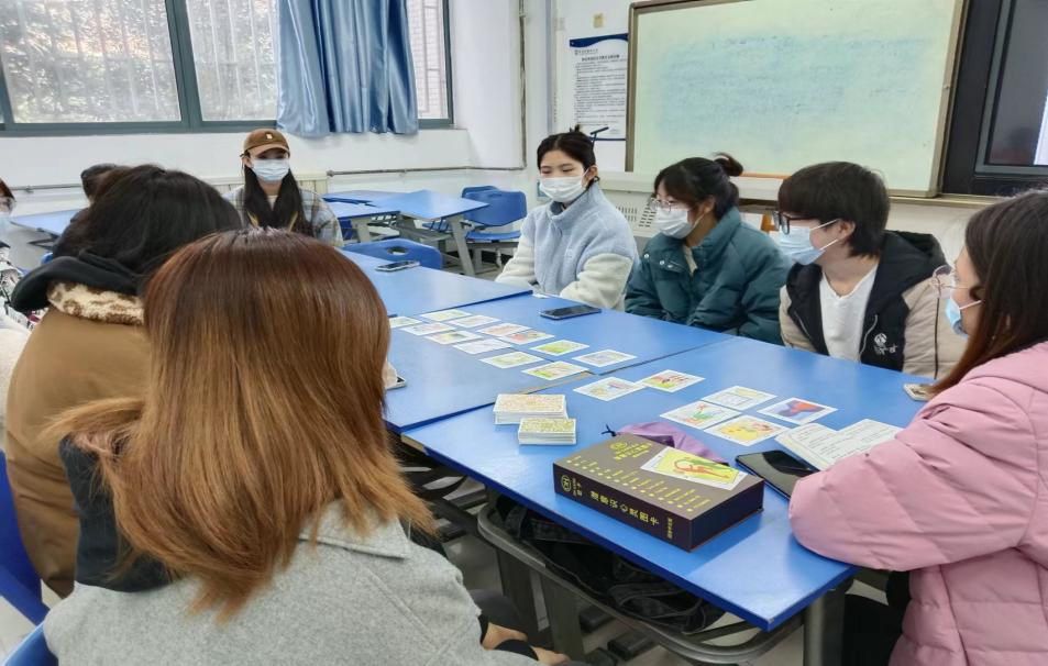 之后,大家依次借助OH卡牌进行自我介绍。不同于普通的自我介绍,借助OH卡牌进行自我介绍使得大家可以将自己最近的状态、自己的理想、自己当下的心态或是自己的期待展现出来。同学们或是忙碌或是迷茫或是焦虑,都将自己内心的真实想法以这样一种轻松的方式倾诉出来,互相治愈。