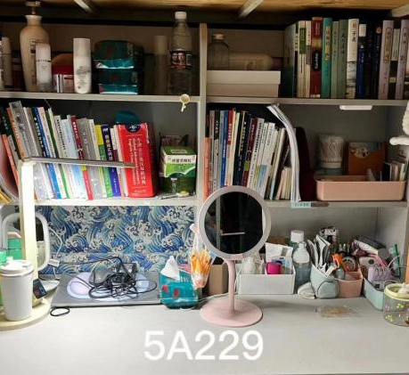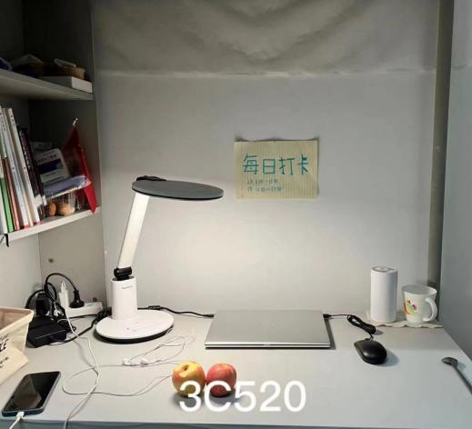 同学们的书桌十分整齐且温馨,每个人都发挥了自己的聪明才智,将宿舍装饰得有趣独特。