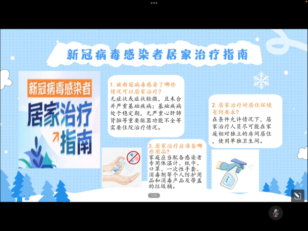 座谈会伊始,主持人刘珂维为大家讲解了关于冬季防护的小知识。由于季节交替,天气变幻莫测并以寒冷为主,我们应特别注意气温变化,适时增加衣物,戴上帽子口罩,防止感冒。坚持锻炼身体,增强体质提高免疫力。其次也要注意交通安全。冬季地面容易有霜冻,路面较滑,有时还伴随着大雾天气,行车、行走途中一定要当心。
