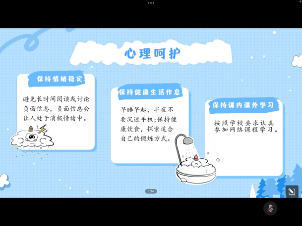 团委学生会权益部在腾讯会议召开冬季安全知识讲座。各班学生代表、权益部全体成员参会。
