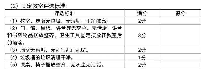 固定教室卫生评比