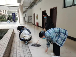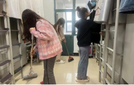 同学们践行“奉献、有爱、团结、互助”的精神,共同协作,高效配合,对宿舍与教学楼区域进行了全面细致的清扫,营造出干净整洁的卫生环境。