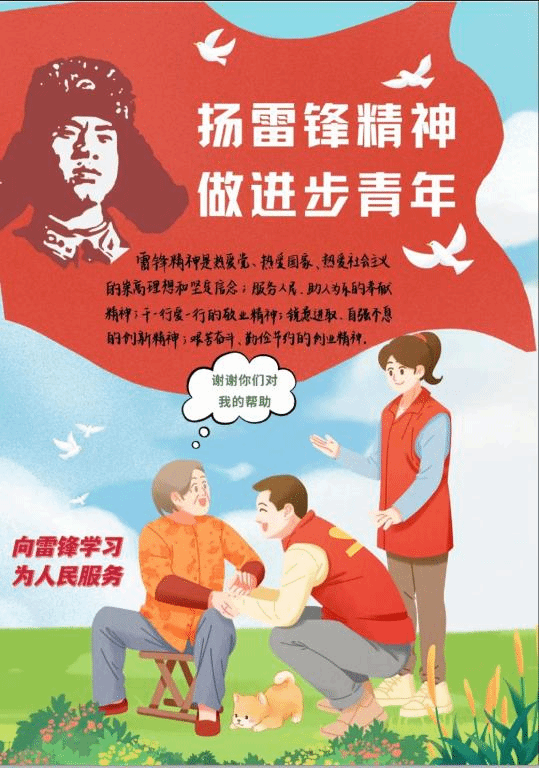 作为时代新人的大学生们,雷锋精神映照心中,青春热血是我们的底气,责任担当是我们的志气,永不放弃是我们的骨气。我们青年学子更要把雷锋精神同爱国主义、爱党精神紧密结合,将其贯穿于学习,工作,生活中。一是要学习雷锋“坚决听党的话,一辈子跟党走”的坚定信念,不断提升自身思想觉悟,用思想武装头脑。二是要学习雷锋“把有限的生命投入到无限的为人民服务中去”的无私奉献品质。在日常行动和思想意识上将助人为乐、担当坚守内化于心,外化于心。从小事做起,帮助同学,积极参加志愿者活动,尊老爱幼,谦让礼貌。三是学习雷锋“干一行,爱一行,专一行”的革命精神。做好大学生在学习方面的本职工作,认真对待每一门课程和每一次作业、考试,认真对待实践活动和课题研究,将知识融会贯通,奋发向上。青年自强,星火成炬。