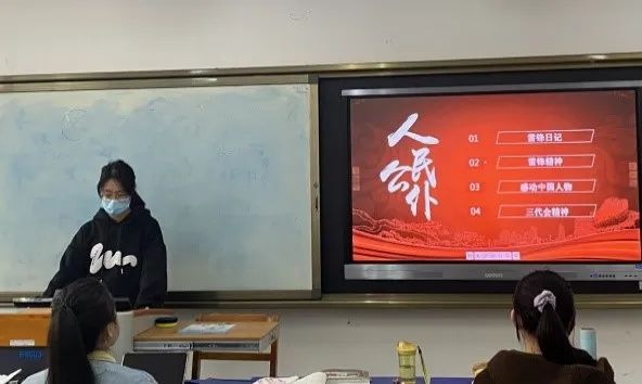 (1)首先,团支书分享了几段雷锋日记节选片段,并邀请同学们诵读,解读文字中蕴含的自立自强、助人为乐、与人为善等道德价值。大家从字里行间中感悟英模情怀,感受雷锋精神闪耀的“求知光芒”“奉献光芒”“初心光芒”。