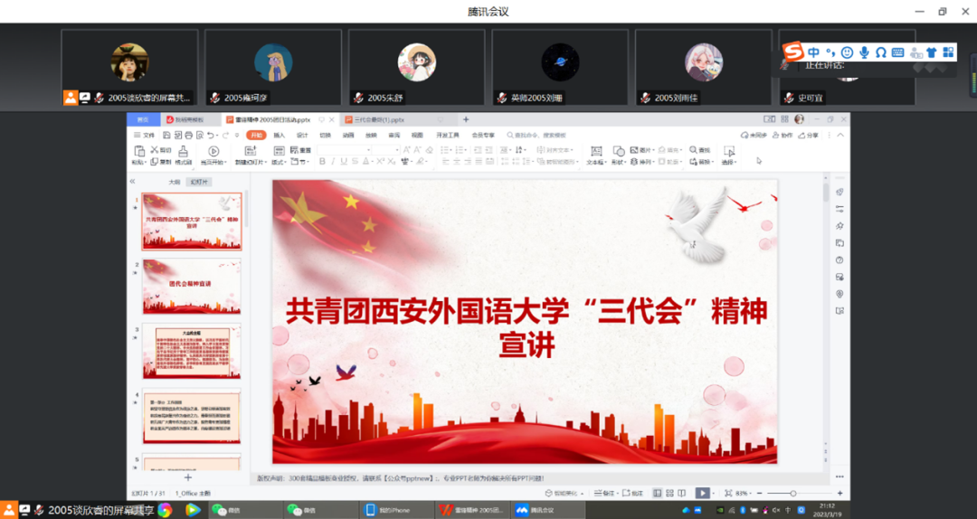 3月13日,22级专硕2班全体同学认真学习了西安外国语大学三代会相关内容,学习方式为线上,以宿舍为单位积极学习探讨,学习效果显著。