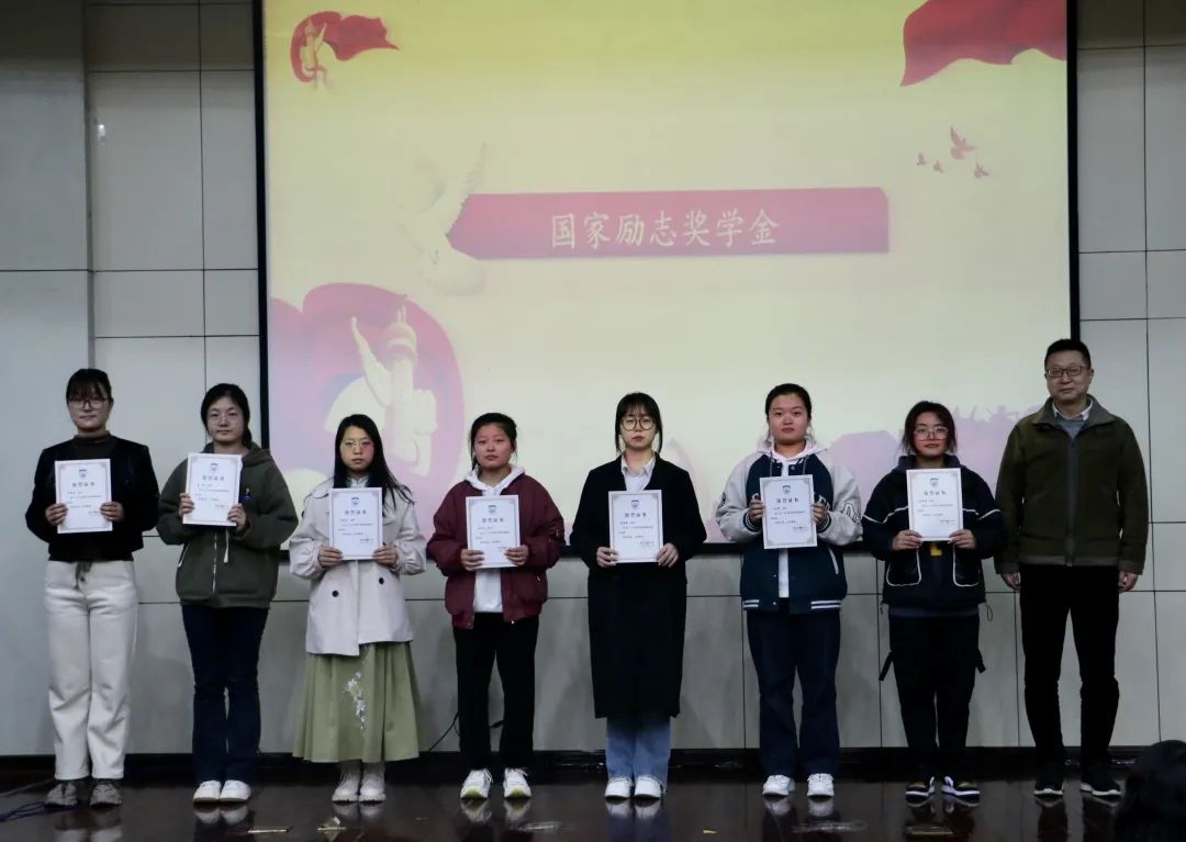 党委书记姚玮为“国家励志奖学金”获得者代表颁奖