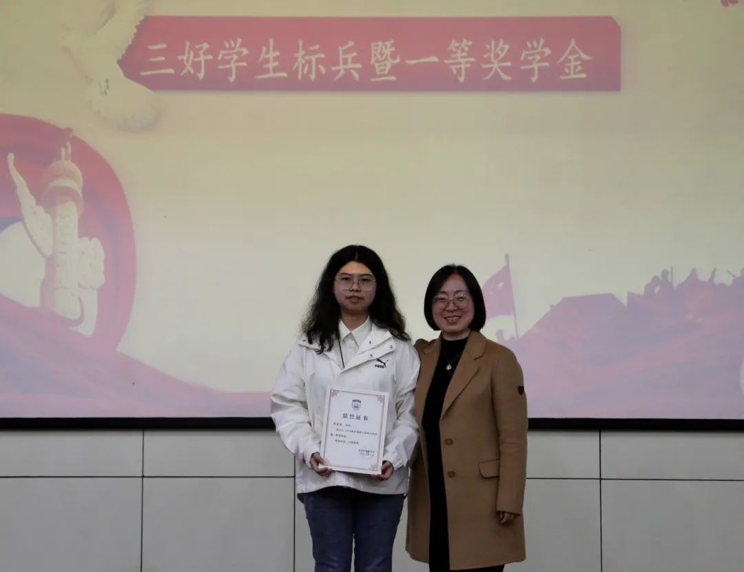 党委副书记刘一静为“三好学生标兵暨一等奖学金”获得者颁奖
