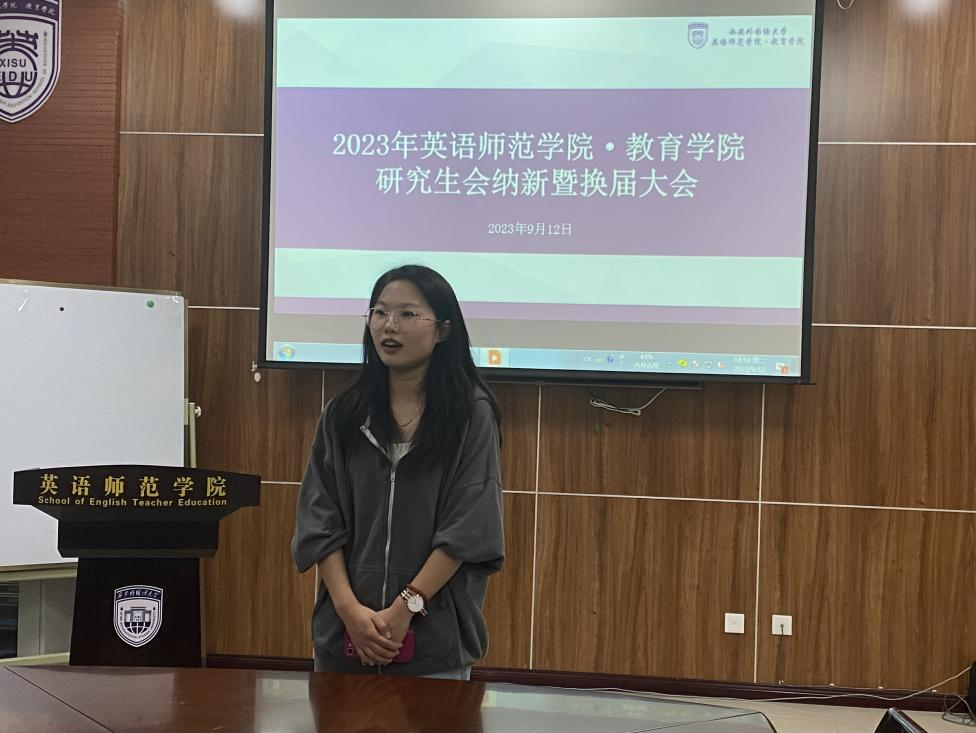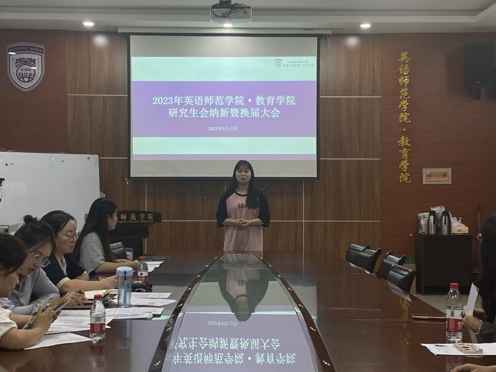 在H107会议室举行了新一届研究生会换届暨纳新大会。党委副书记刘一静、研究生辅导员薛璐、王鑫及全体研会成员参加本次会议,会议由轮值主席郑玉兰主持。