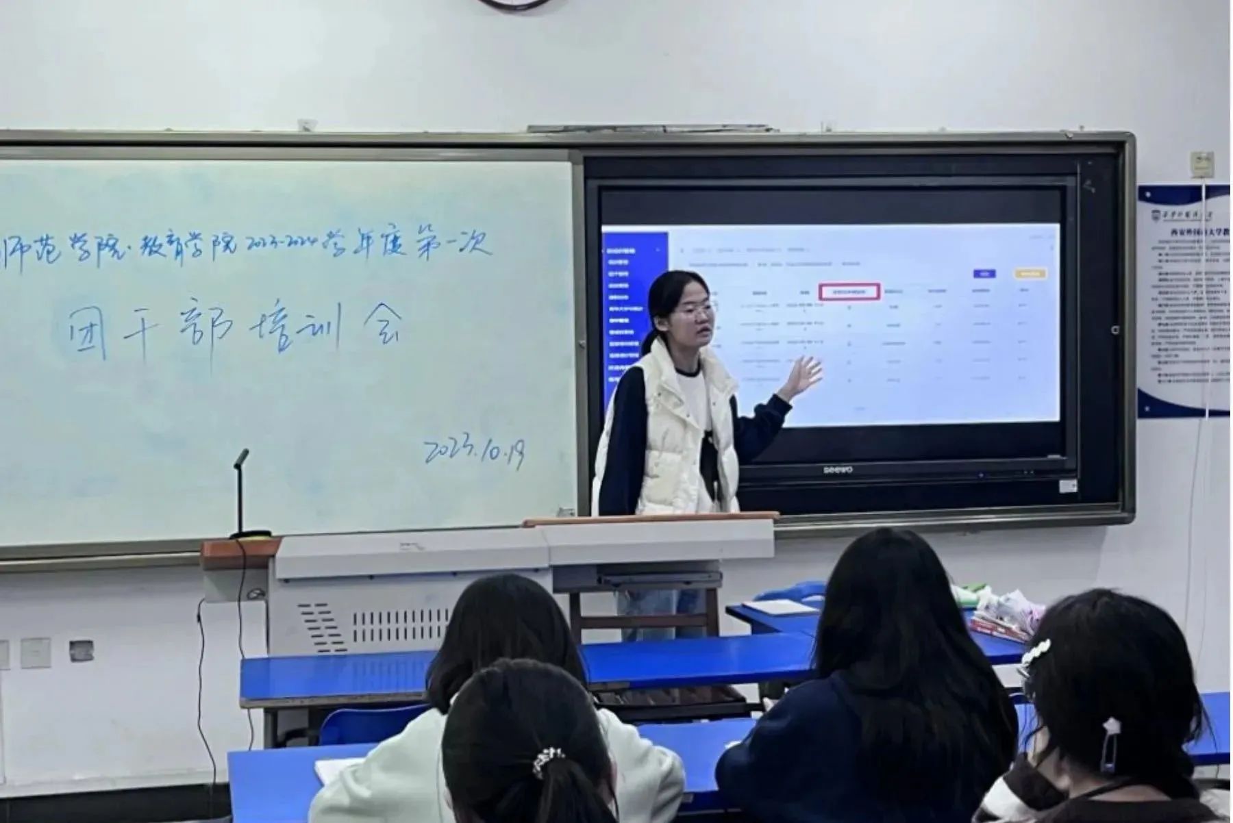 团委学生会组织部于10月19日中午12:40在教学楼D区举行了2023-2024学年度第一次团干部培训会。本次培训会的主题是“团结协作,共创未来”。