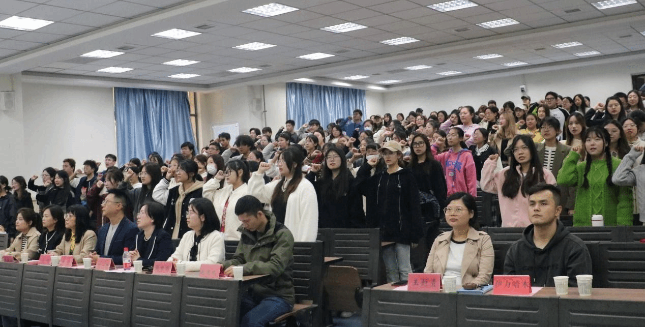 接着,第十七届团委学生会轮值主席万静文同学带领全体同学宣誓。一字一句皆充满了对英师团学的忠诚与期盼。扬帆奋进正当时,勇立潮头敢为先。在掷地有声的宣誓声中,可以感受到他们昂扬的斗志,也仿佛看到了英语师范学院·九州娱乐官网