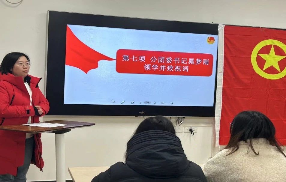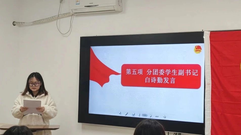 团委学生副书记史可璇主持,分团委书记晁梦雨、分团委学生副书记白诗勤、青年宣讲团成员2107班团支书刘瑜、2023年下半年新发展团员及相关团支书参加。