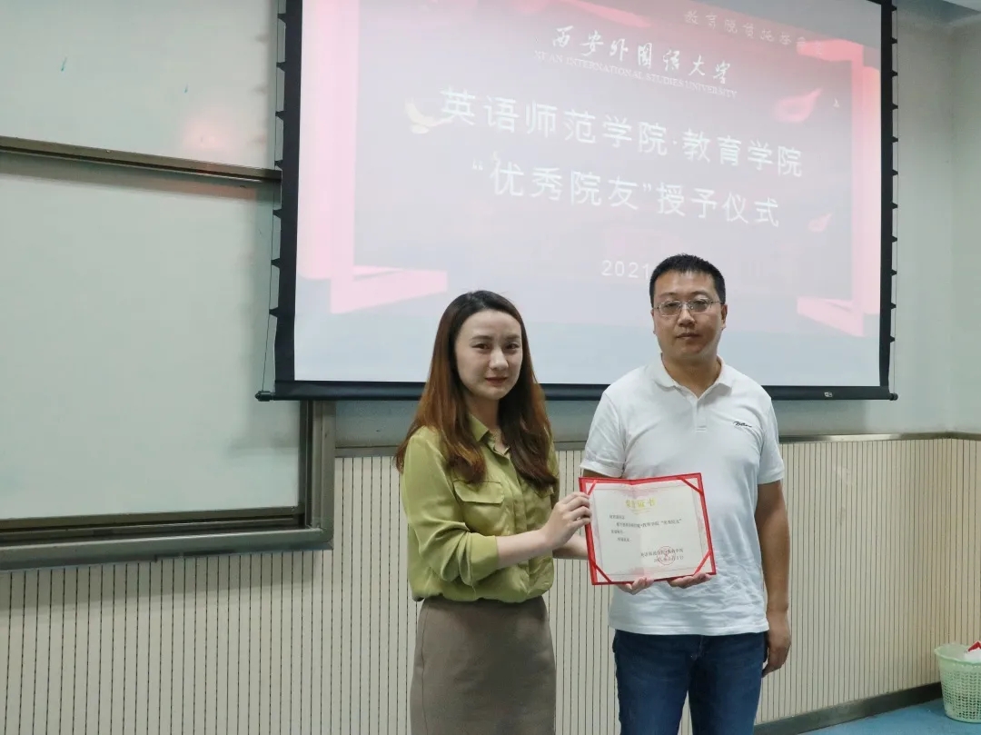 进行了“优秀院友“的授予仪式,副院长王嘉铭为何若晨颁发了“优秀院友”证书及纪念品并合影留念。