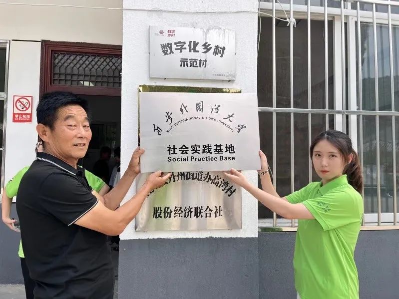 “星星支教火,点燃冬奥情”项目实践团队在延安市宜川县高湾村举行暑期社会实践基地挂牌仪式。高湾村支书兼主任杨东斌、村支部书记祖红新、驻村干部杨江平和张军红出席此次活动。
