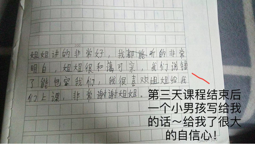 在这次的短暂的支教经历中,我和孩子们都收获匪浅。在课程即将结束时,有个孩子和我说:“姐姐,你的课非常有趣,Thanks a lot!”这个短语是我在教学过程中提到一个关于感谢的地道表达,在这一刻,我觉得我的教学努力没有白费。孩子们在课程中的学习所付出的努力有目共睹,所收获的成果也让我感到欣慰。对于我来说,这次支教课程是一次奇妙的锻炼,我一个人去面对学生,脱稿教学,学会解决课堂中的嘈杂等,都令我对奋斗着的每一位教学工作者产生了更深的敬畏与向往。我希望,在今后的求学与教学过程中,能够将“学高为师,身正为范”内化于心,外化于行!