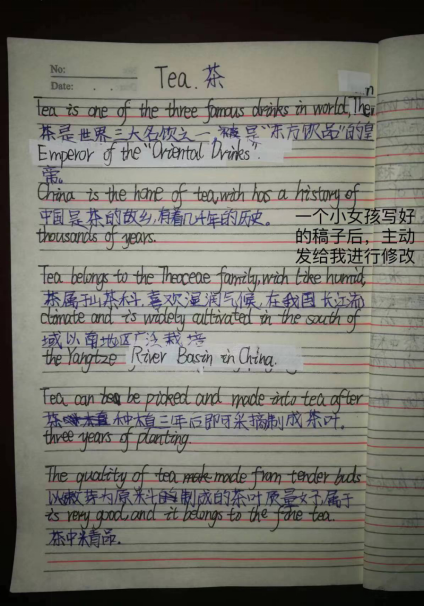 第5天,为孩子们进行所有知识的回顾与测试。孩子们的笔记做得十分认真,在课堂上能够踊跃回答我提出的问题,对于前面4天的知识掌握程度不错,测试结果比较满意!