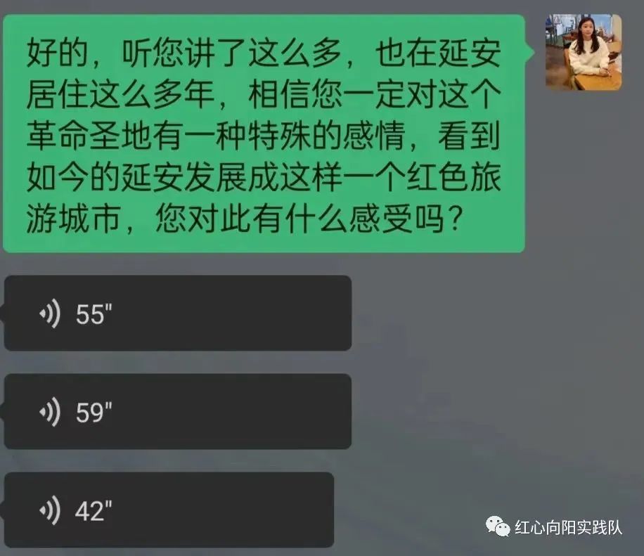 为深刻理解延安精神,我们团队与一位在延安居住多年的党员同志进行了线上交谈,期间主要提出了以下几个问题:
