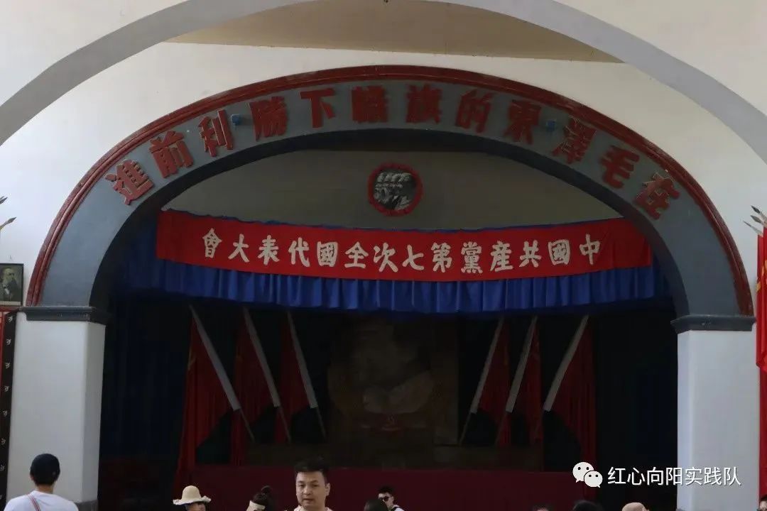 沿着林荫小道,我们来到了中共七大的会址,庄严的大礼堂展现在我们眼前,七十余载岁月匆匆流逝,会场的桌椅早已失去了往日的光泽,鲜艳的党旗是最美的点缀,来往的游客凝望着这旗帜深思,任何鲜艳的颜色在时光的洗礼之下会褪色,但人们心中的信仰不会,置身于此,我们似乎依旧能看到几十年前那个庄严的现场,这是党的重要时刻,也是中华民族的重要时刻,任何人都无法忘记也不能忘记。1945年在延安召开的中共第七次全国代表大会,是中共历史上一次承前启后、继往开来,具有革命里程碑意义的大会,从这里,确立了毛泽东在中国共产党的领导地位。
