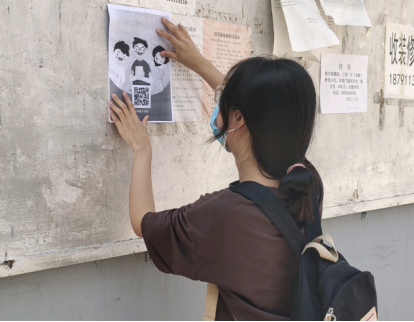 为进一步加大宣传力度,引导当地居民重视家庭教育,三下乡XISU小队在城镇热闹的街区进行了宣传手册的发放和张贴。