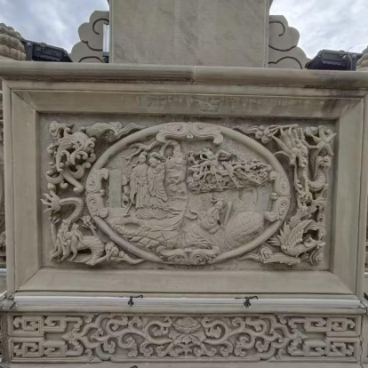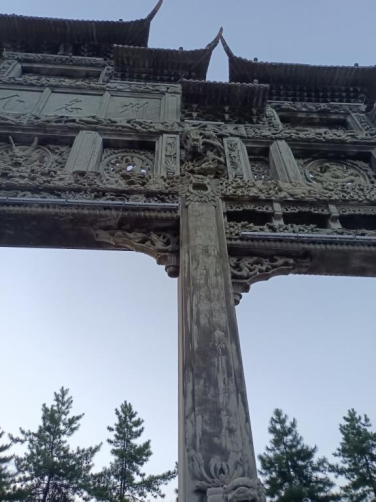 The content of the Stone Archway is extensive and profound, including the auspicious things that are flying in the sky, walking on the ground and swimming in the water. The local historical stories of Yugu, Fusu, Meng Tian, Li Guang, Zhaojun, Wenji, Han Shizhong and Ma Ruji are inscribed on it. The reliefs are engraved with lotus, ancient pine, peony and cold plum and so on,which are pleasing to the eyes.
