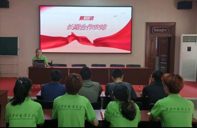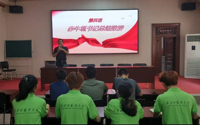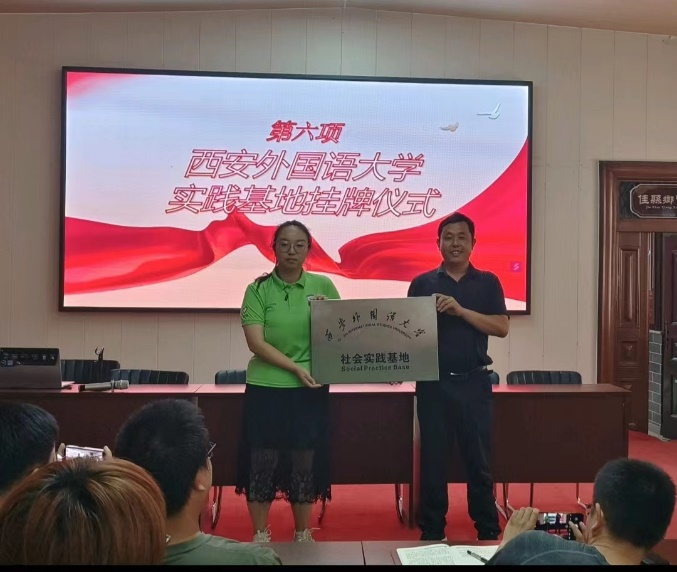 赤牛坬村委会举行西安外国语大学社会实践基地授牌仪式。随后队长张博雅代表“赤牛青语”所有成员做出承诺,团队将继续深入了解乡村振兴战略,感受农村发展的机遇和挑战,发挥青年团队之力量,为民俗文化的传播与发展做出切实贡献。