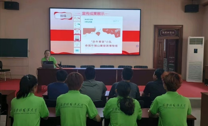 队长张博雅对团队成员们的实践成果进行汇报展示。从直播宣传到文稿推送,实践队员们多角度多形式地切实“以青年之力促赤牛发展”。