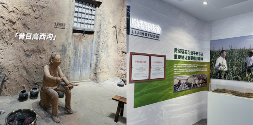 一张张极具视觉冲击力的照片、一个个各具特色的展馆、一段段记录过往岁月的画面,反映了高西沟从地表破碎、贫瘠荒芜的秃山沟到山清水秀、旱涝保收,填沟打坝修梯田、植树种草建果园,硬是闯出了一条水土流失综合治理的科学发展之路,如今高西沟的林草覆盖率达到70%,成为全国生态治理的先进典型。
