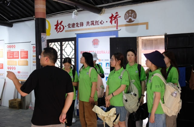 第一站,调研队在村领导及工作人员的指引下前往杨桥村党群服务中心。杨桥村党委副书记徐立平为大家详尽地介绍了杨桥村的地理规划、历史渊源、得名由来、文化民俗、乡贤名人等。