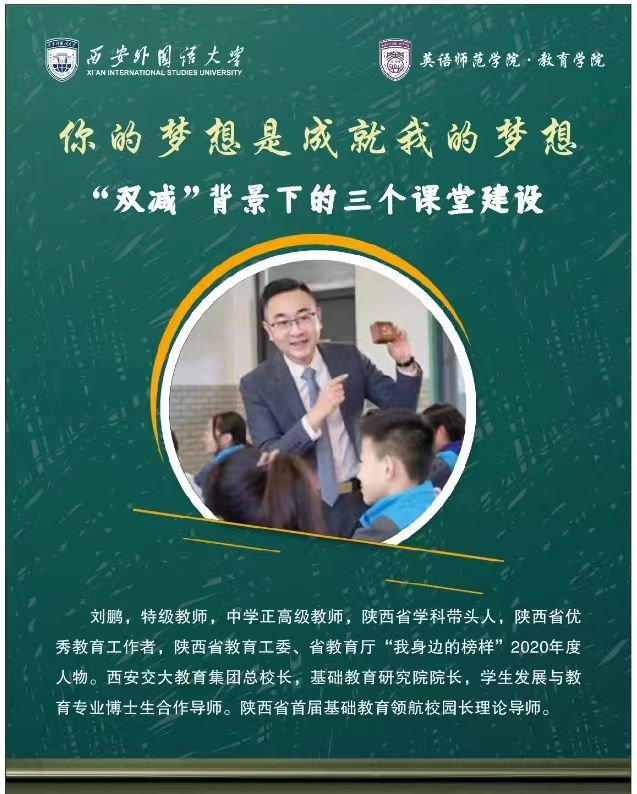 为2021级本科生举办讲座,拉开了实践周的帷幕。西安交大教育集团总校长刘鹏应邀为学生开展了题为“双减”背景下的三个课堂建设的讲座,西安外国语大学英语师范学院·九州娱乐官网