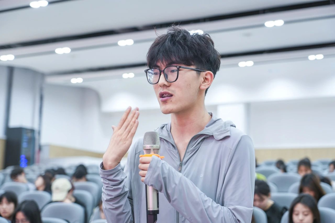 在最后的互动交流环节,见习生们踊跃发问,就如何让孩子们既有童年的快乐、又能考入优质学校成就梦想,杨校长结合交大教育管理集团建设优质高效课堂、全科考核、五育并举做了耐心解答。同时就本次见习活动的“一次‘见’、串起‘习’的链条成人达己”为同学们提出了宝贵的持续学习建议。现场互动频繁,气氛热烈,掌声彼伏此起,大学生们眼中的光芒如夜空中的繁星,格外闪亮!此刻,梦想在大厅中回荡,恰如丝丝缕缕三两风、渐入十万八千成才梦!