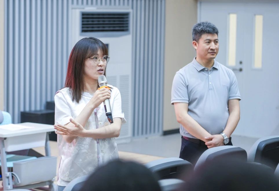 执行校长杨校长带来微讲座《课程育人视域下的“课堂与学堂-讲课与导学-教书与教人》。她以我校成为西外的实习基地“因什么?”,成为基地我们需要“做什么?”,大学生来我校实习后可以“带什么”回去,发出引发我校全体教职工深入思考的“灵魂三问”。
