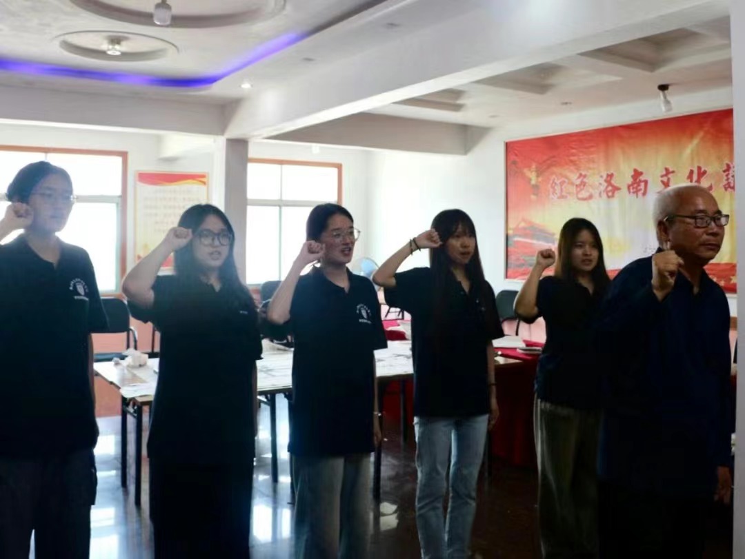 在参观结束后,讲解员吕三运老师带领大家重温了入党誓词,并向实践团成员赠送了《洛南拾遗》一书,他鼓励广大青年学生党员在寻根问源的实地走访中汲取红色故事的深厚内涵,在未来的学习和工作中不断赓续革命薪火,继承光荣革命传统,在实现中华民族伟大复兴中国梦的新征程上奋勇前进。