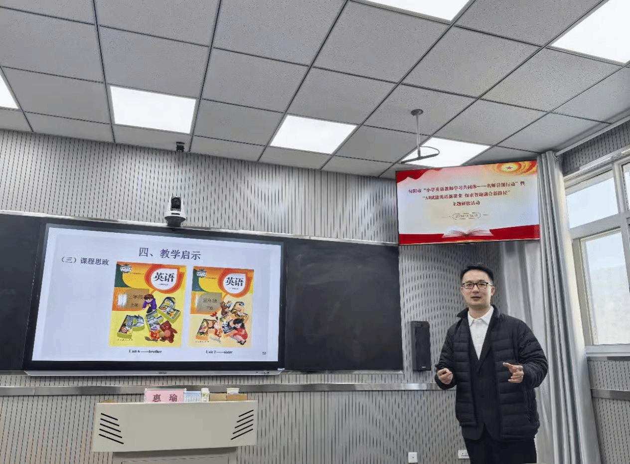 在旬阳市第三小学的分会场活动中,惠瑜副教授为当地中小学英语教师进行了题为《英语教材的词汇教学活动分析及教学启示》的专题讲座。他深入浅出地阐述了如何结合人工智能,在外语教学的词汇、语境等环节中自然融入文化自信、家国情怀与价值引导,实现知识传授与价值塑造的有机统一,精彩的讲座获得了旬阳市英语教研员及在场教师的高度评价。