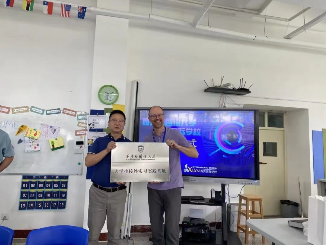 在签约授牌仪式上,西安国际学校校长Wendler Paul Walter对学院一行来访表示热烈欢迎,他表示,西安国际学校将加强与西安外国语大学的交流和沟通,依托大学生实习实践基地发挥出各自的资源与优势,围绕人才培养、专业建设、学生实习就业等方面进一步拓宽合作领域,创新合作机制,共同搭建合作交流平台、培育优秀人才。姚玮强调了高校访企拓岗工作对于拓宽就业渠道,服务高校毕业生就业的重要意义,他指出,双方通过交流达成的校际合作是双方对教学理念、学生发展的相互认可,应充分发挥高校人才培养功能,进一步探索可持续发展的合作模式。同时,他也盛情邀请西安国际学校的师生到西安外国语大学参观交流,进一步推进两校的深度合作。