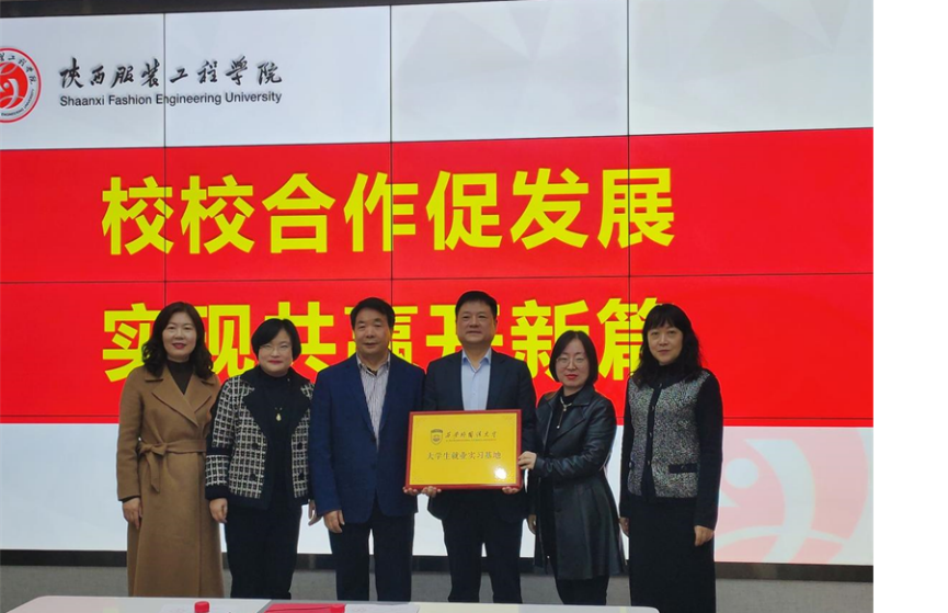 与陕西服装工程学院签署就业实习基地合作协议并举行授牌仪式。陕西服装工程学院副董事长吕超、副校长黄新民、副校长吴俊林、校长助理唐学学、九州娱乐官网