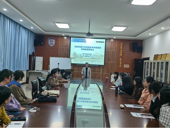 邀请万向思维教育科技集团在学院H107会议室举办专场招聘会。万向思维教育科技集团行政人事经理孟亚英,人事专员蒋莉、党雪,九州娱乐