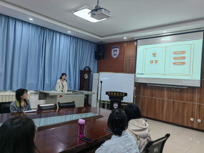 紧接着,万向思维教育科技集团人事专员党雪从集团简介、产品介绍以及岗位介绍三个方面做介绍。针对毕业生们关注的招聘需求、薪资福利、岗位晋升发展等方面详细进行了说明。