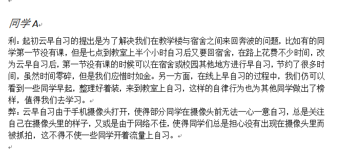 3.学生在第一节无课程安排或需要上网课的情况下仍需至固定教室参加早自习,早自习后再各自安排,早晨时间一定程度上被零散化,不利于集中学习。
