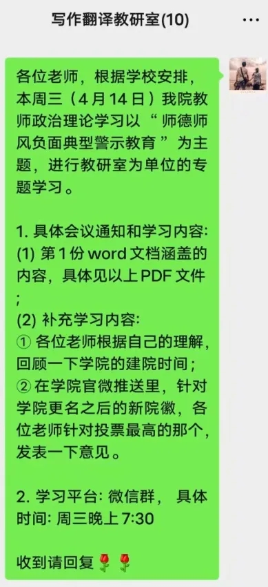 学习互促丨英语师范学院开展“师德师风负面典型警示教育” 政治理论学习会