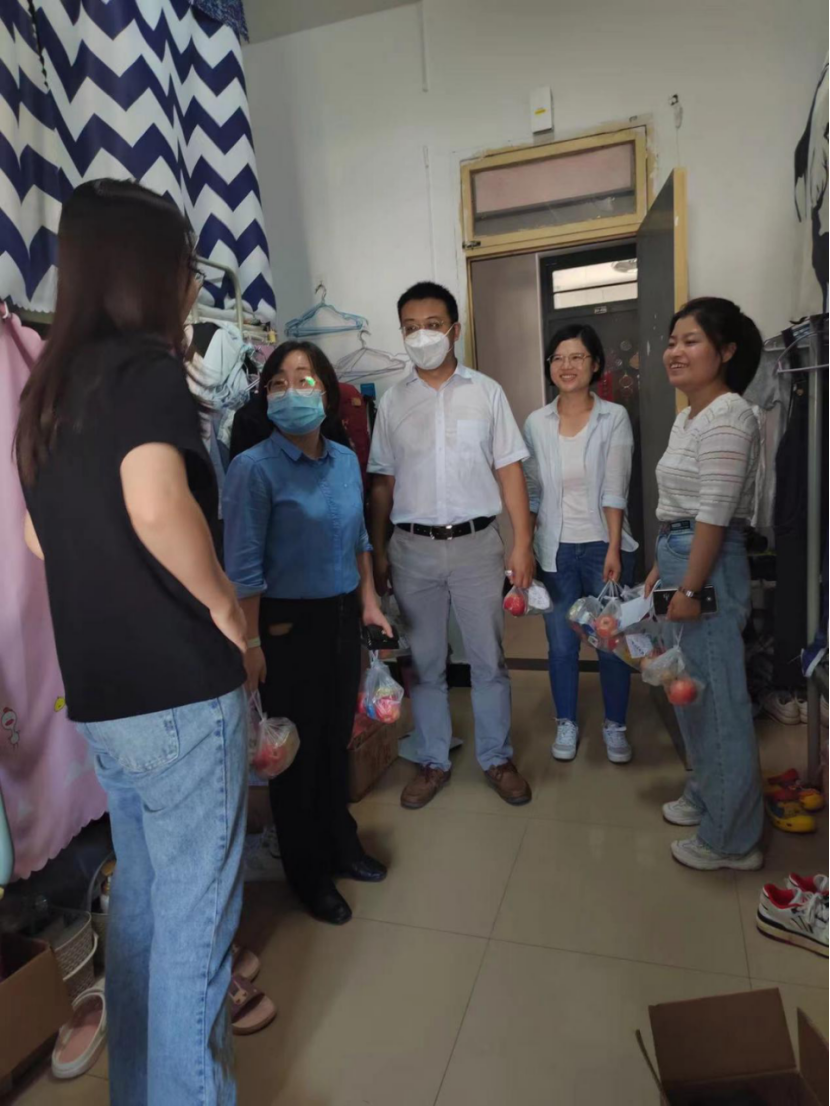 学院领导老师深入学生宿舍,与学生亲切交谈,表达了对同学们的节日祝贺,还细心询问了最近的学习和生活情况,嘱咐大家要做好疫情防控,特别提醒学生注意宿舍用电安全,还要多回顾所学知识,做好学习规划,养成良好的生活习惯,保持积极乐观的心态。