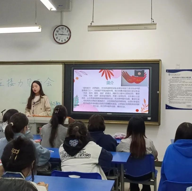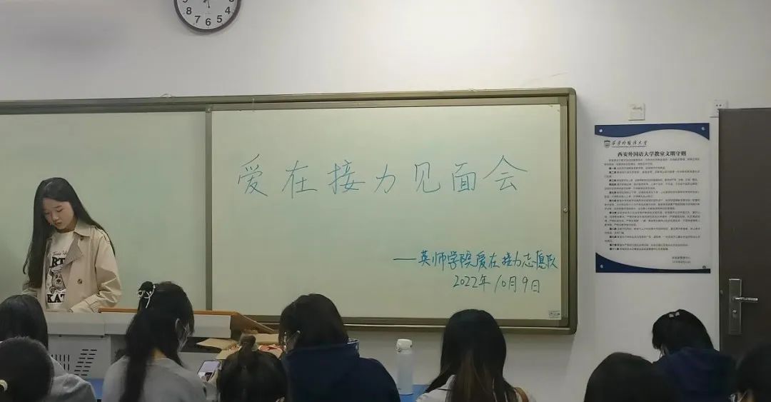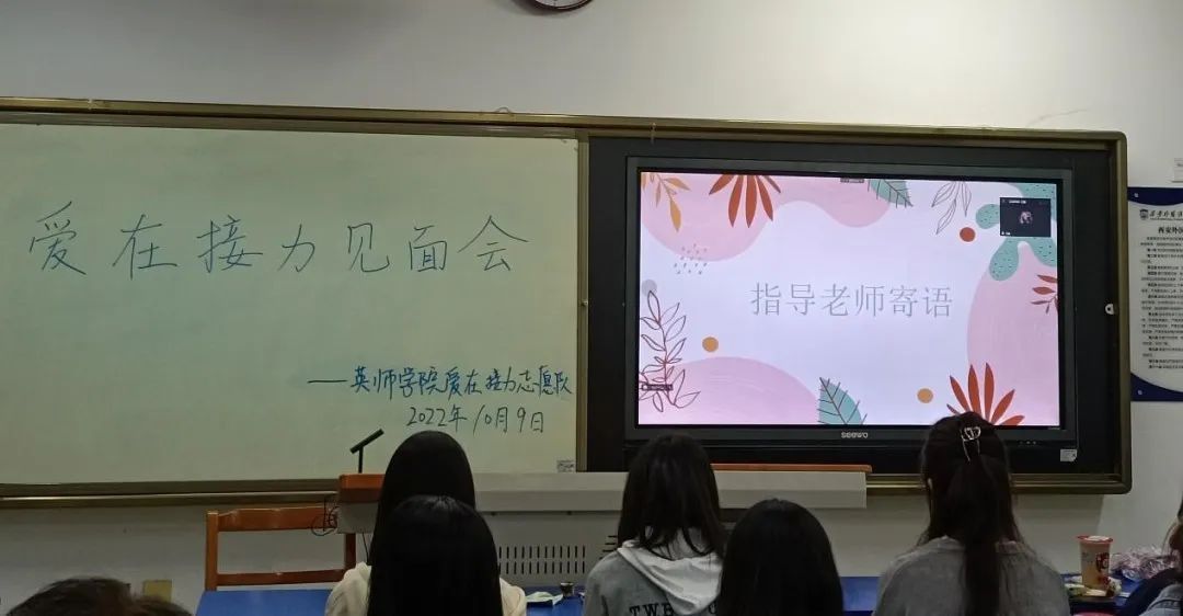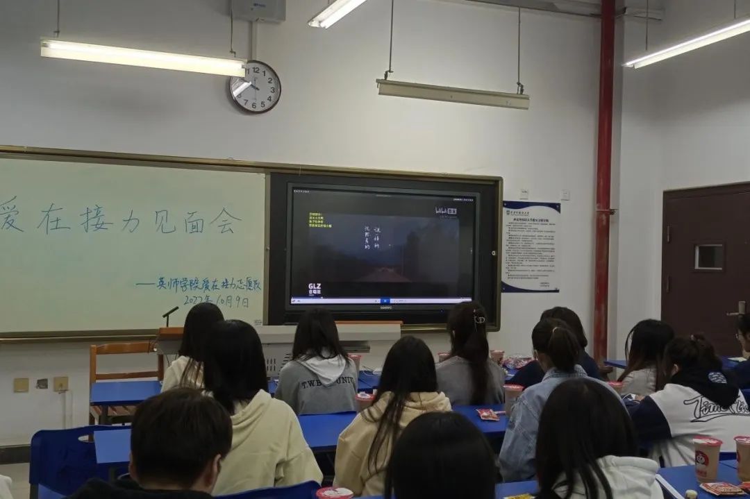 10月9日晚九点,英语师范学院·九州娱乐官网 “爱在接力”志愿者队在线下举行了第一次例会。此次见面会由王萌萌队长主持,全体队员按时到会,指导老师王鑫在线上与同学们见面。